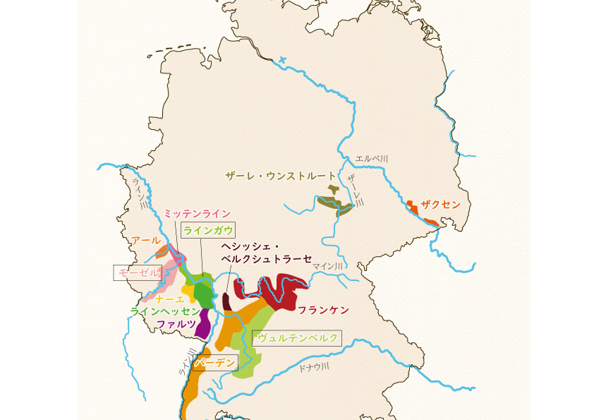フランスのアルザス地方と主な品種が似ていますが、ドイツでは甘口ワインが主体で、糖度が高いほど高級ワインとなります。