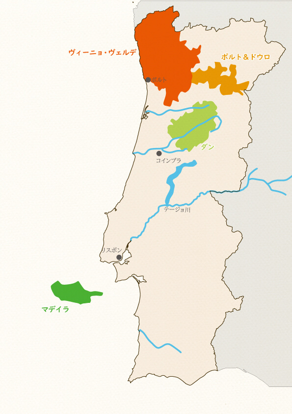 ヴィーニョヴェルデのさらに南方にあるダンでは、「トゥリガ・ナショナル」「ティンタ・ロリス」などの渋みの多い辛口赤ワインが生産されています。