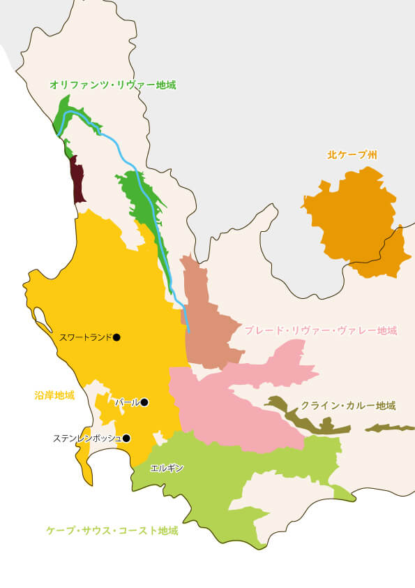 また、パール、スワートランド、ステレンボッシュでは、シュナンブランの白ワインが生産されており、すばらしい品質のワインです。