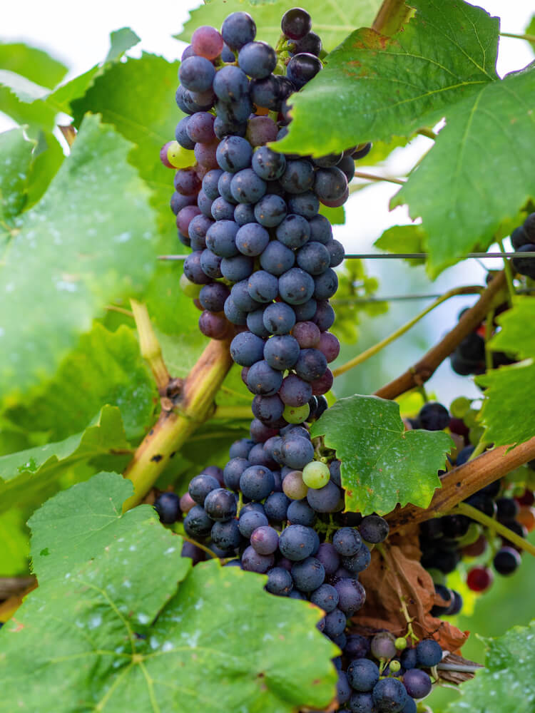 ピノタージュは、ピノ・ノワールとサンソーを交配させて誕生した黒ブドウ品種。