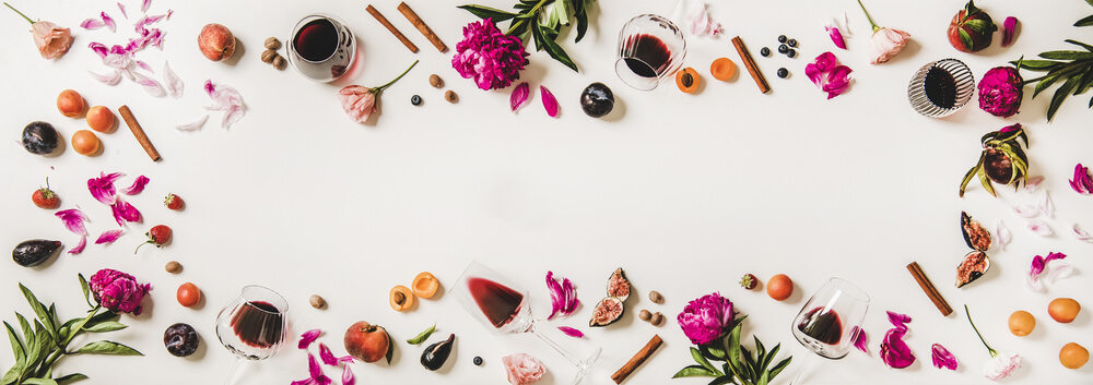 大きく分けると、赤ワインに感じられるアロマは果皮が赤・紫・黒などの果物やスパイスであると覚えておくと、ワインテイスティングのときに表現しやすくなります。