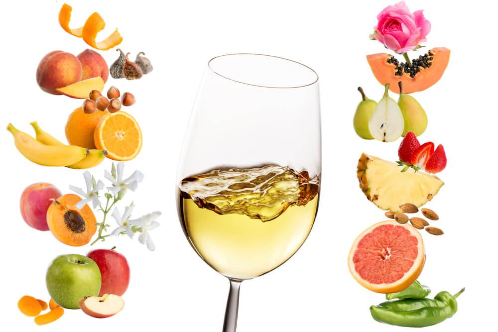白ワインのアロマは果実系の香りが中心となり、それに加えて花やハーブなどの植物系の香りを感じることも。